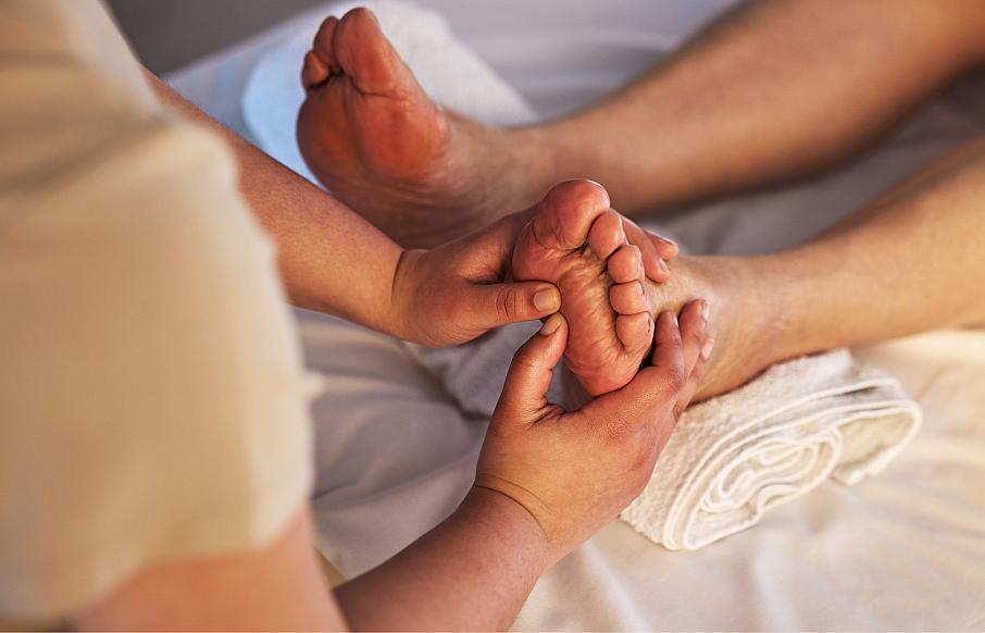 Sesión de reflexología podal para estimular puntos clave y mejorar el equilibrio del cuerpo