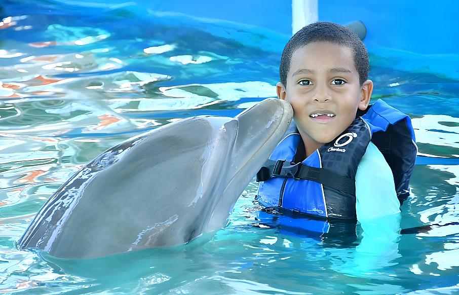 Paga RD$2,499 por un pasadía para niño que incluye un emocionante encuentro con delfines más almuerzo y acceso a todas las atracciones del parque.